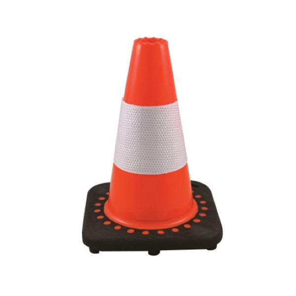 Κώνος σήμανσης πορτοκαλί χρώματος κατασκευασμένος από PVC υλικό με ένα (1) κολάρο ανακλαστικότητας τύπου I και μαύρη βάση.